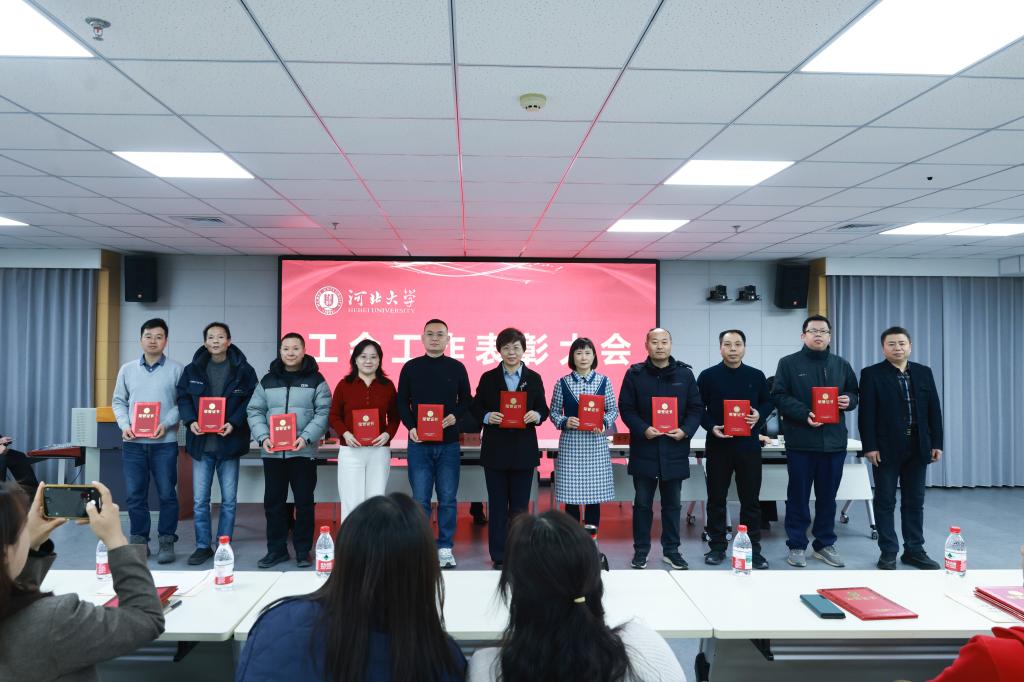 1月22日上午,河北大学工会工作表彰会在主楼628报告厅举行。我院分工会荣获2024-2025年度“先进教工小家”荣誉称号,王春征老师荣获“优秀工会干部”,马海云、白利斌、王利勇、陈华、张红蕾等五位老师荣获“优秀工会积极分子”称号。